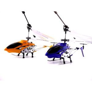 S107G 3 Channel Mini Indoor Co-Axial Metal RC Helicopter w/ Built in Gyroscope (Red & Blue) Set of 2